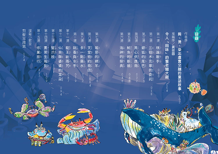 「《蟹蟹理髮店》講述了一系列輕巧又妙趣橫生的故事,蟹先生和蟹太太這對性格互補的好夥伴,悉心服務每位光臨的客人,讓他們留下難忘的美好經驗,個個頂著獨特的髮型回家。知性的作者善加觀察各種海族生物的獨特習性,創造出各種奇遇,有的令人莞爾一笑,有的令人為我們的生態環境捏一把冷汗。作者發揮色彩繽紛的想像力,展現豐厚的愛與關懷,讓閱讀故事的孩子笑開懷地愛上這個海濱小鎮的點點滴滴。」──黃筱茵│童書翻譯與評論家
