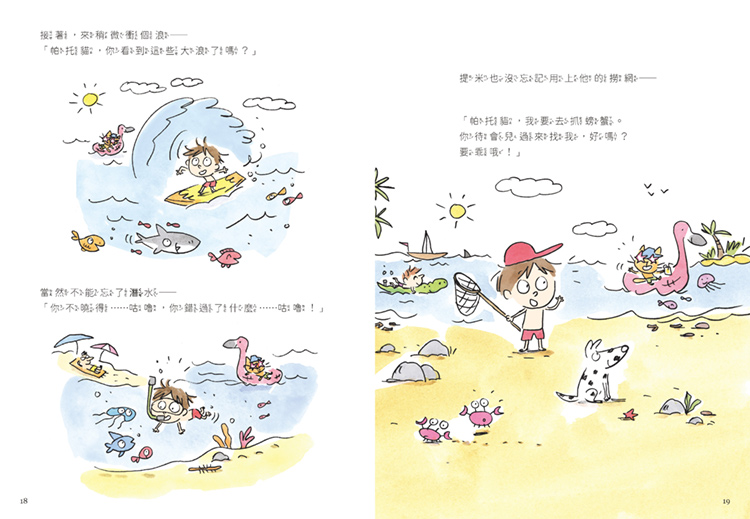 提米和帕托貓早就等不及,要衝去海邊玩個夠!